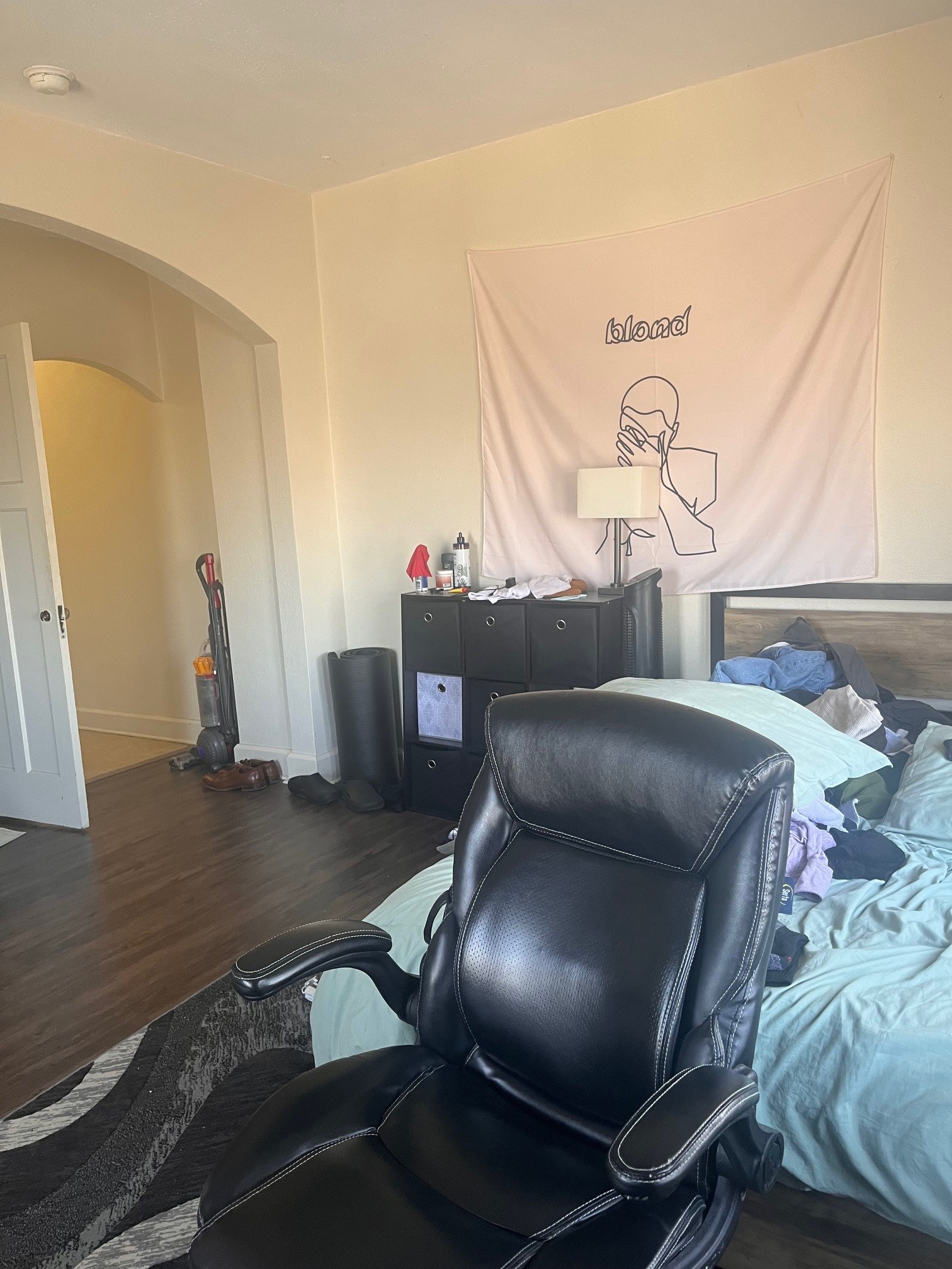 Living Description: Studio apartment with choice of detached garage parking, or off-street parking space. Sunny big room with small entrance hallway and a big closet. Full-size bathroom, and kitchen. Vinyl plank flooring, and vinyl throughout. Washer and dryer in basement. Tenant pays for all utilities. Walkable distance to campus. Free cambus stop on the corner.